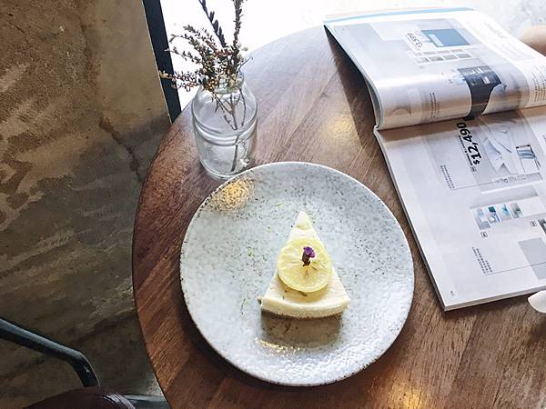🍋檸檬起司蛋糕,盤子好美,lemon slice 和小花也讓蛋糕提昇質感!